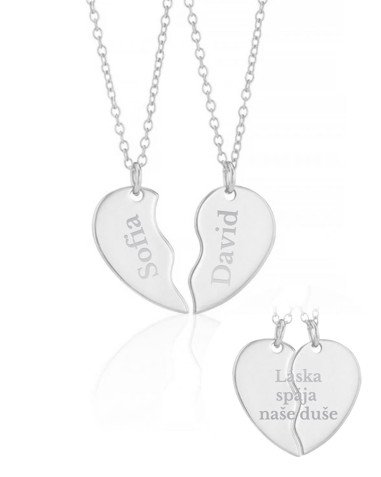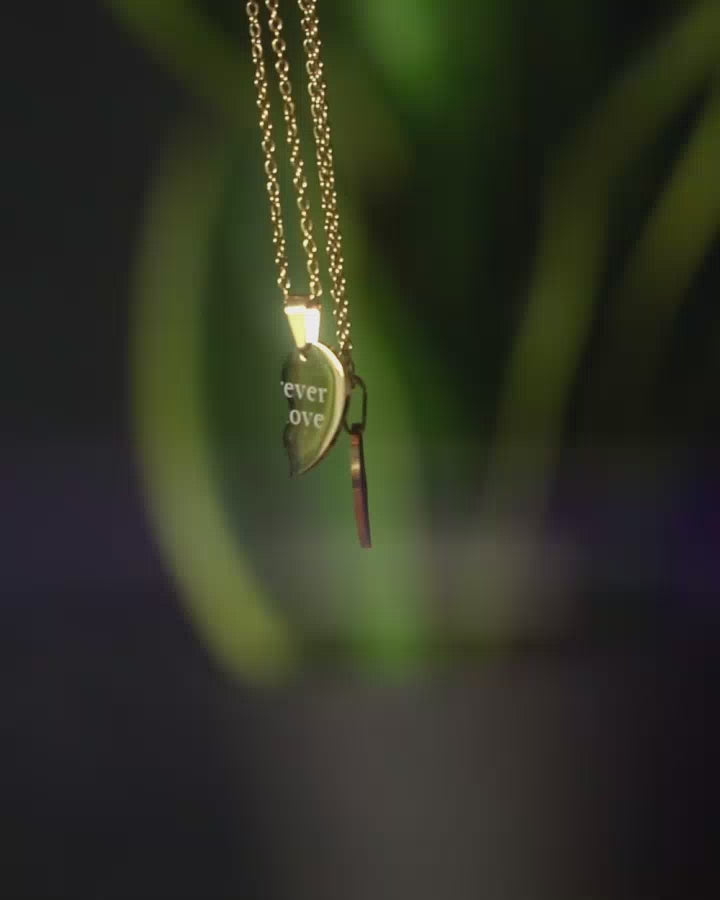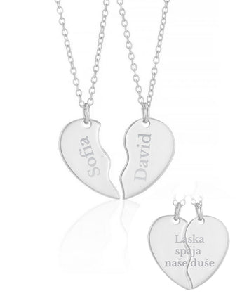 Die Anhänger für zwei mit Ihren Buchstaben und jeweils einer Hälfte des Herzens bilden zusammen ein perfektes Herz als Symbol dafür, dass Sie wirklich zusammengehören.